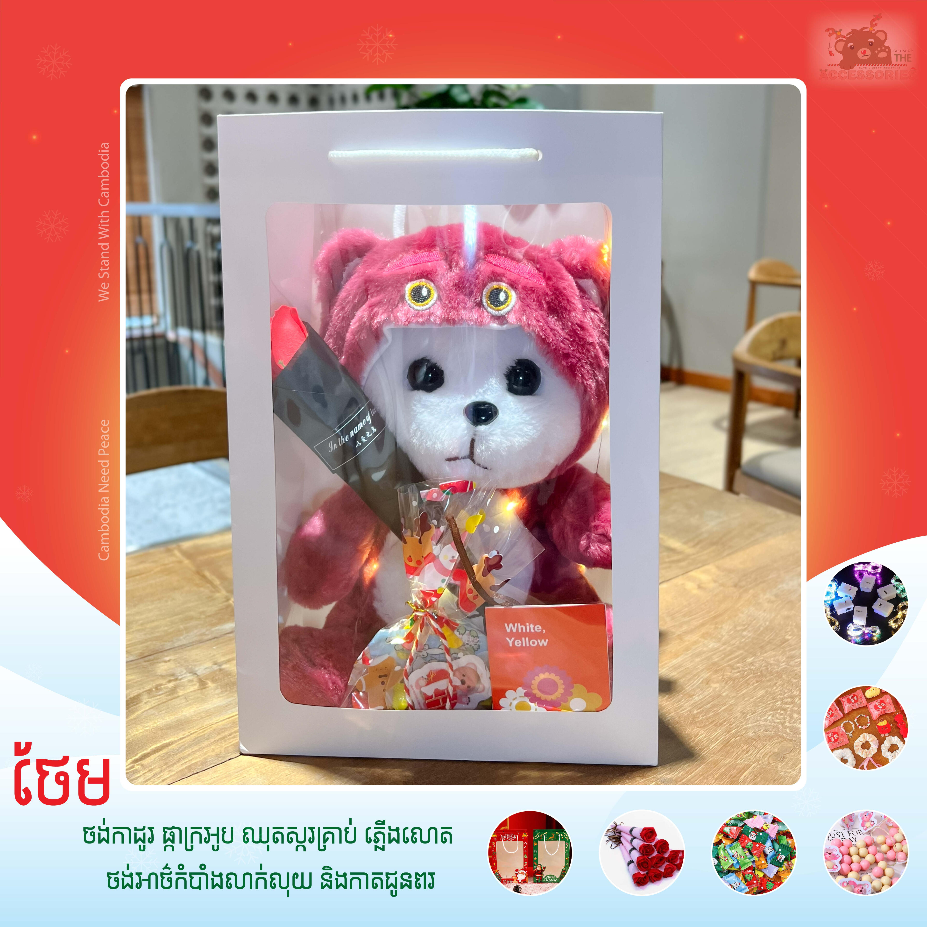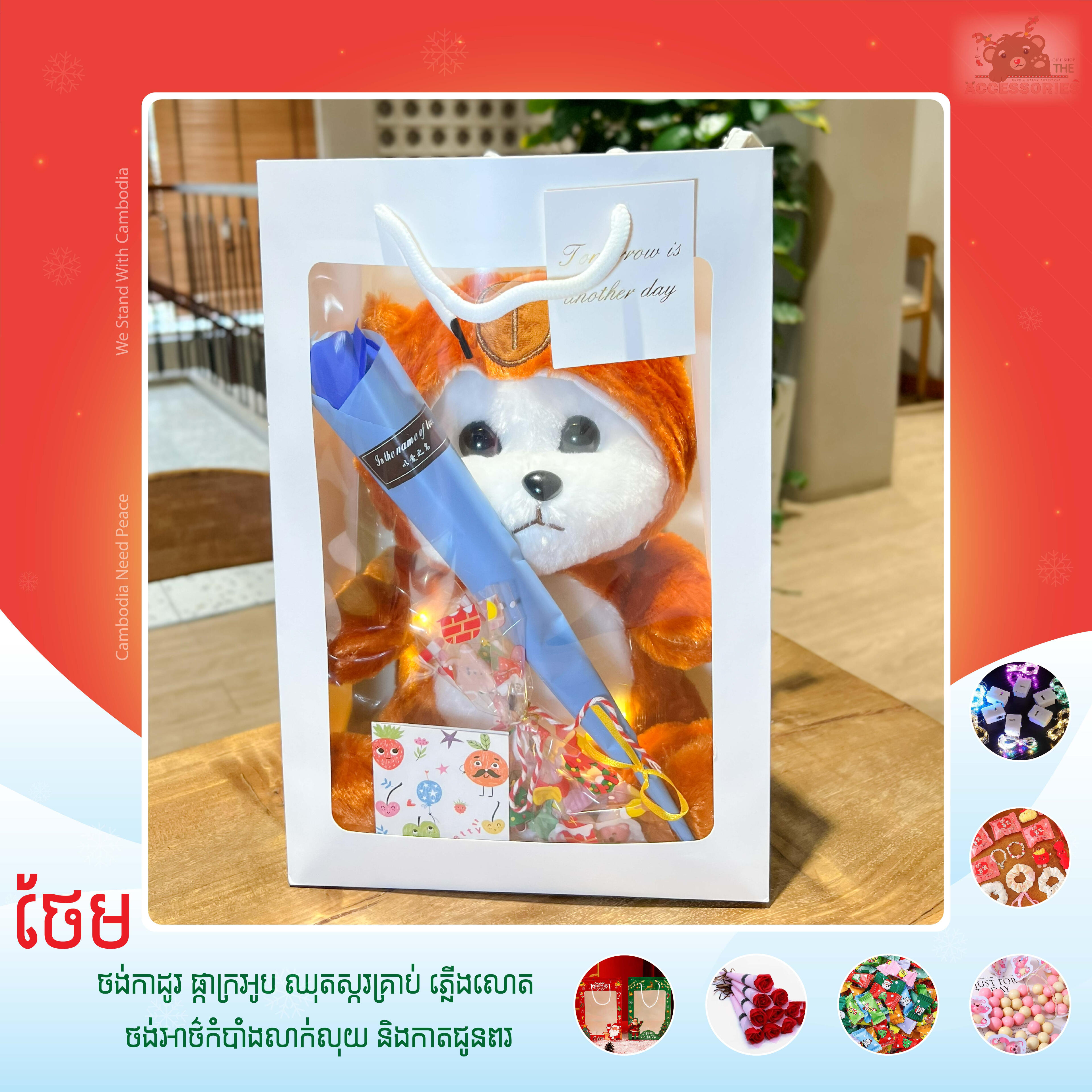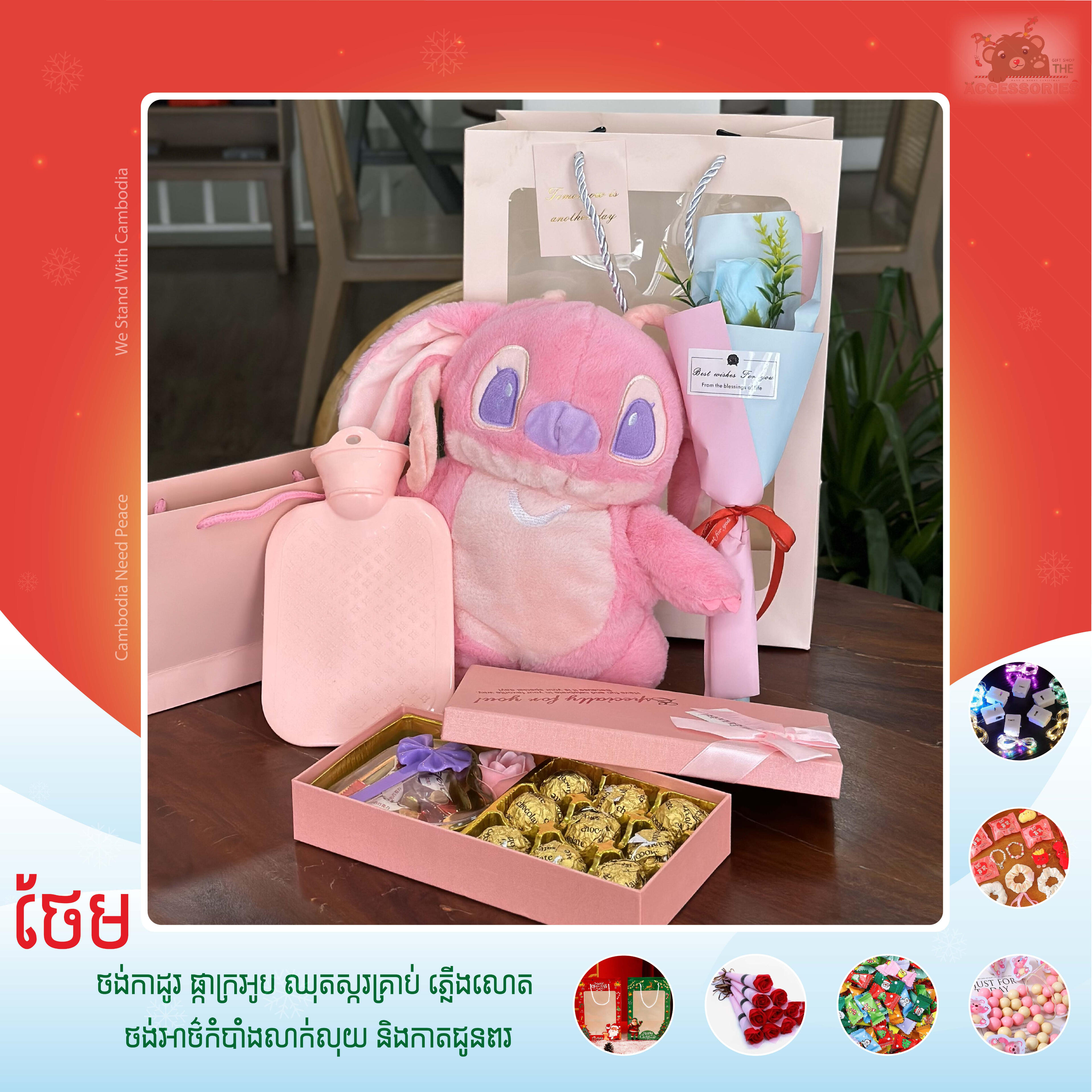FREE បូមខ្យល់អោយតូច ផ្កាសាប៊ូក្លិនក្រអូប ឈុតស្ករគ្រាប់ ថង់អាថ៌កំបាំង កាតជូនពរ