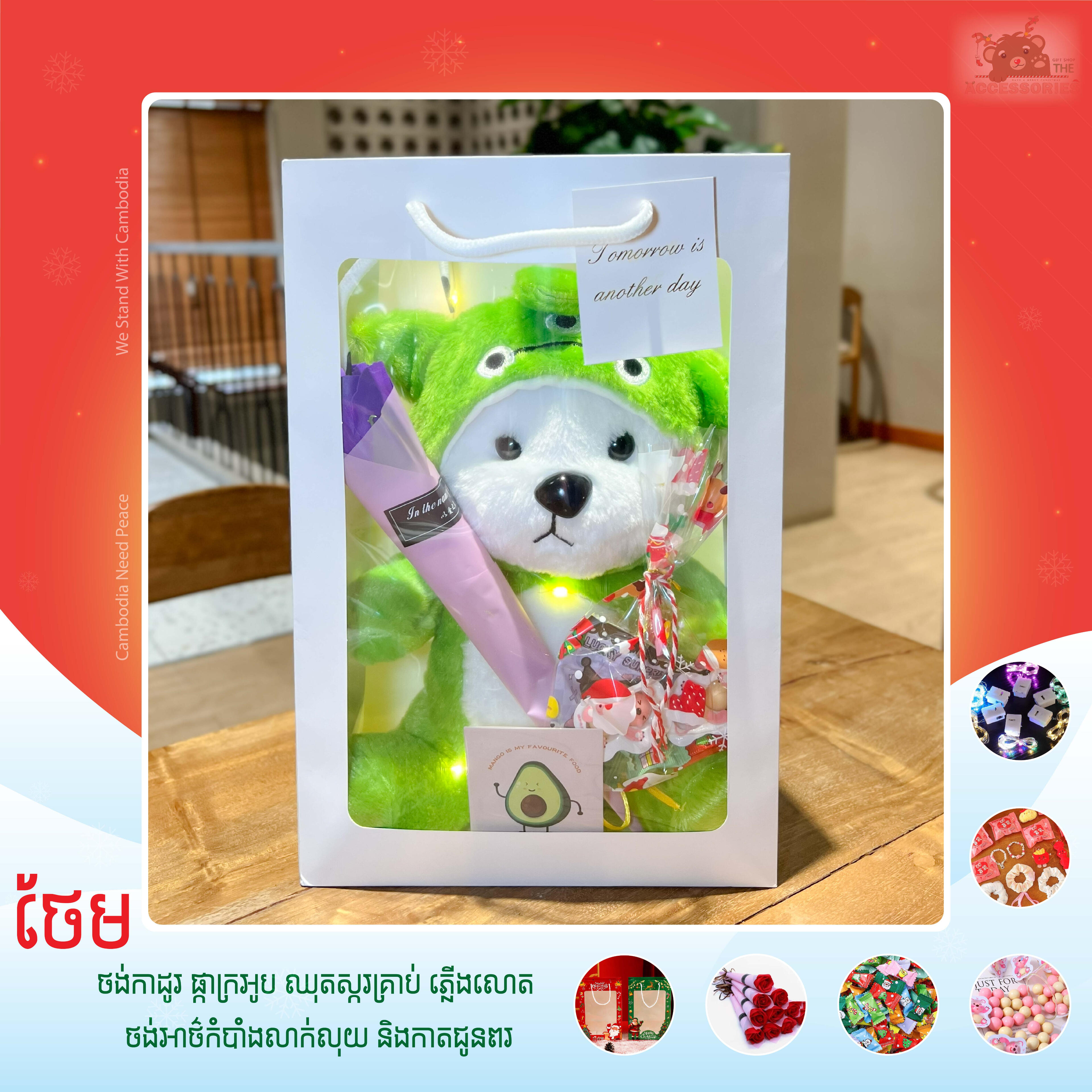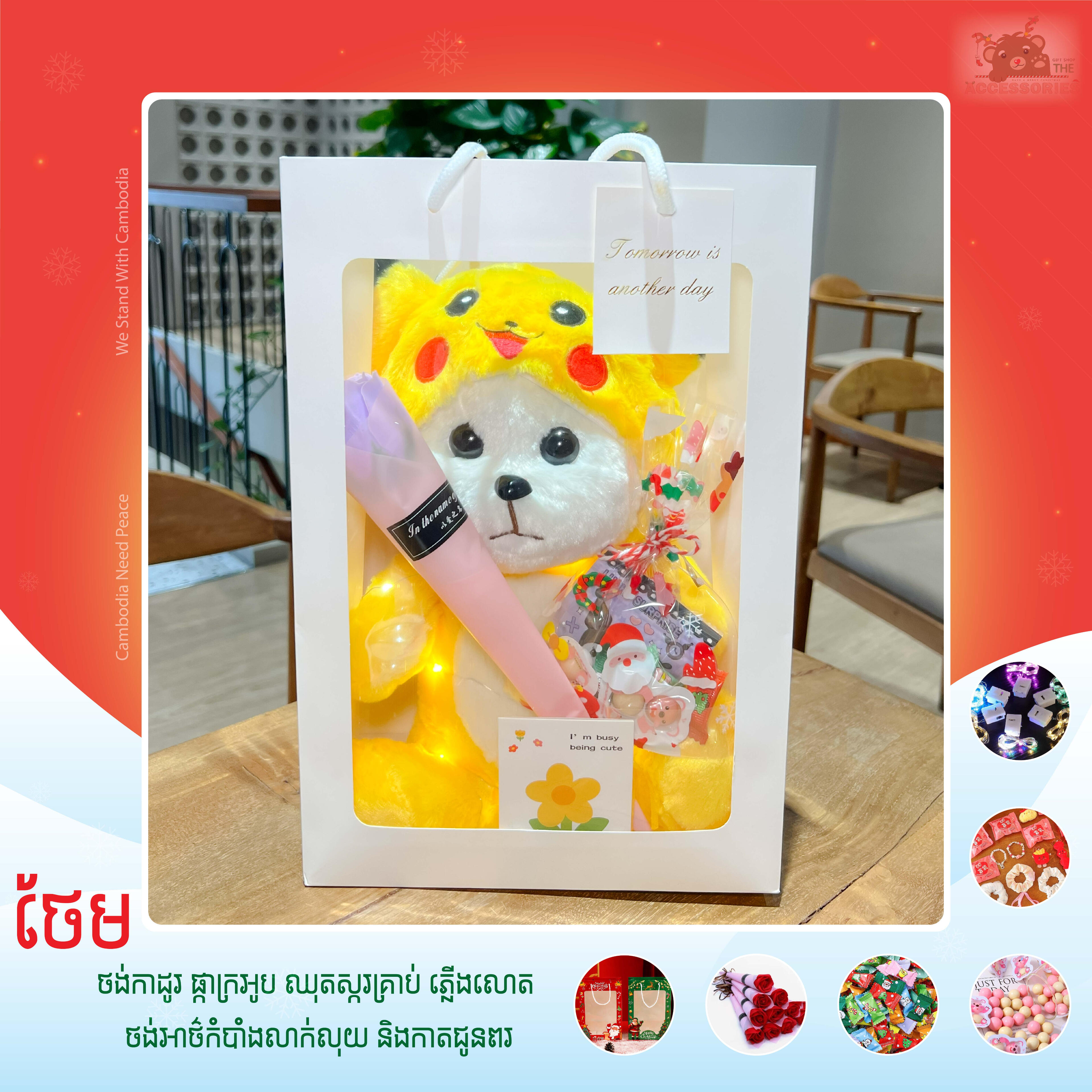 FREE បូមខ្យល់អោយតូច ផ្កាសាប៊ូក្លិនក្រអូប ឈុតស្ករគ្រាប់ ថង់អាថ៌កំបាំង កាតជូនពរ