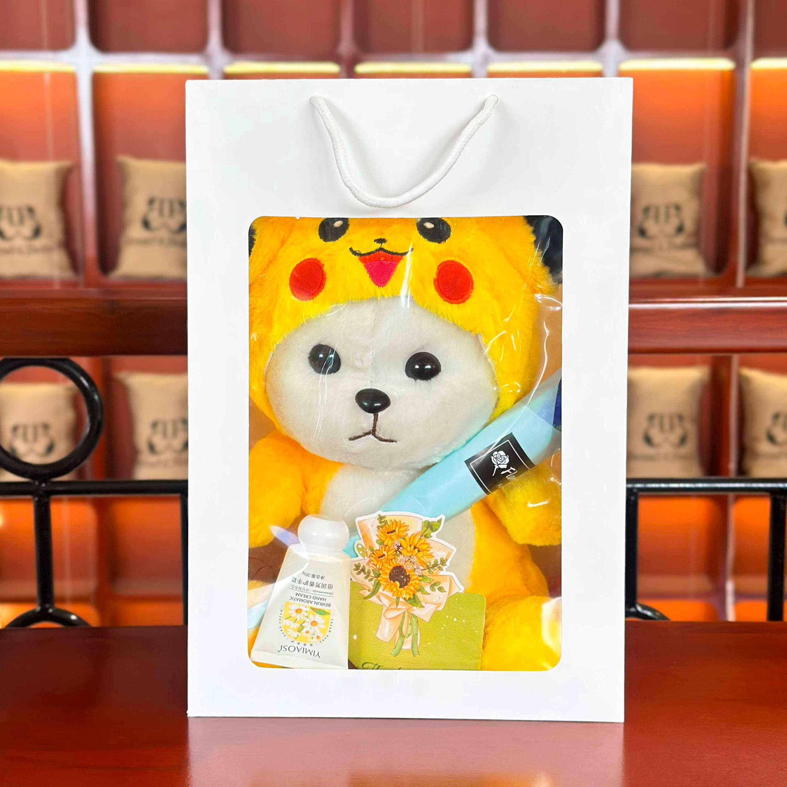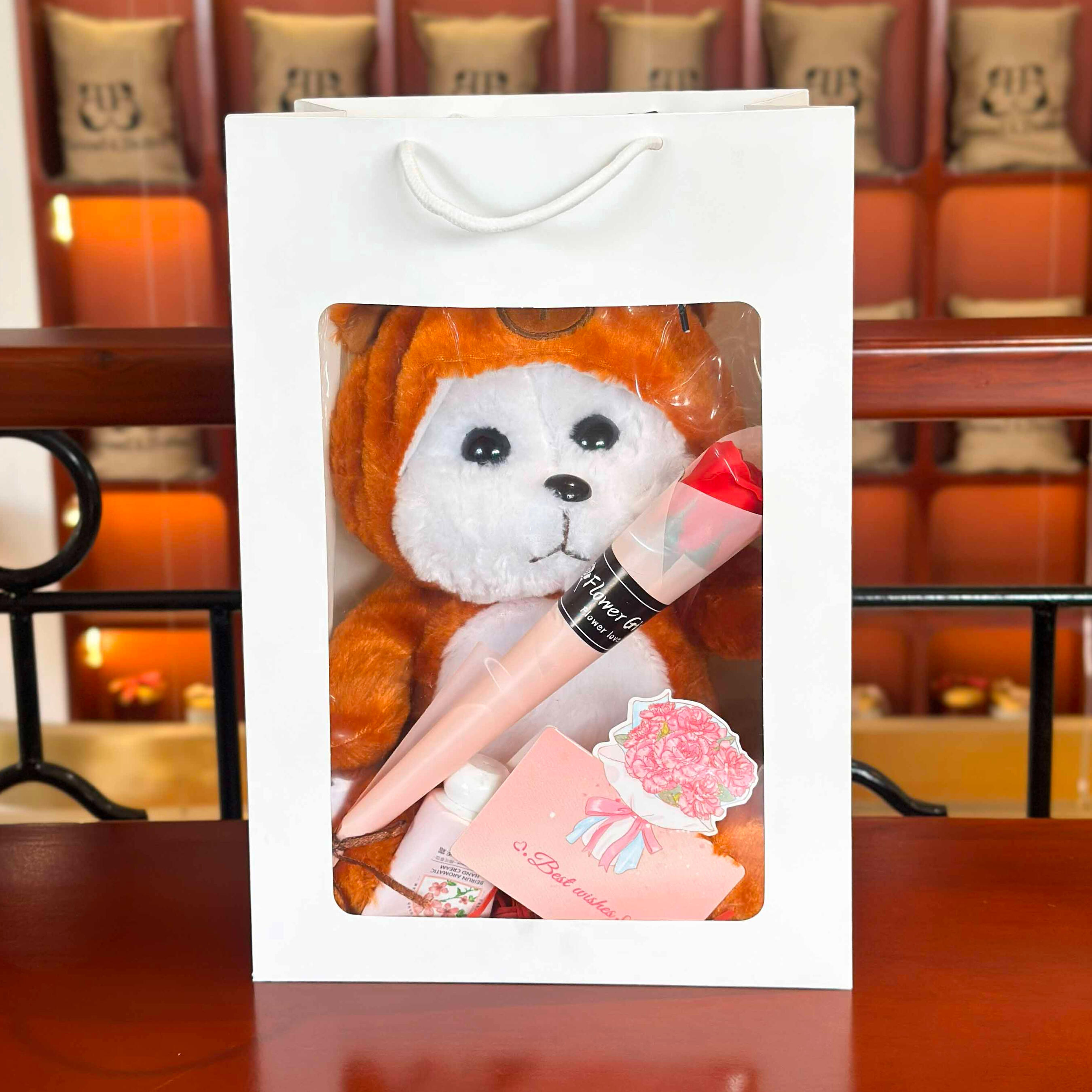 ថែមថង់កាដូរ ផ្កាសាប៊ូ ឡេក្រអូប និងសរសេរកាតជូនពរសម្រាប់អ្នកទទួល